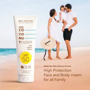 Ανακαλύψτε το BEE FACTOR Exotic Coconut Tender Face & Body Cream SPF50, τη νέα αντηλιακή κρέμα με υψηλή προστασία κατάλληλη για όλη την οικογένεια. Με δροσερή, ανάλαφρη υφή κατάλληλη για πρόσωπο και σώμα αφήνει το δέρμα απολαυστικά άνετο χωρίς ίχνος λιπαρότητας.