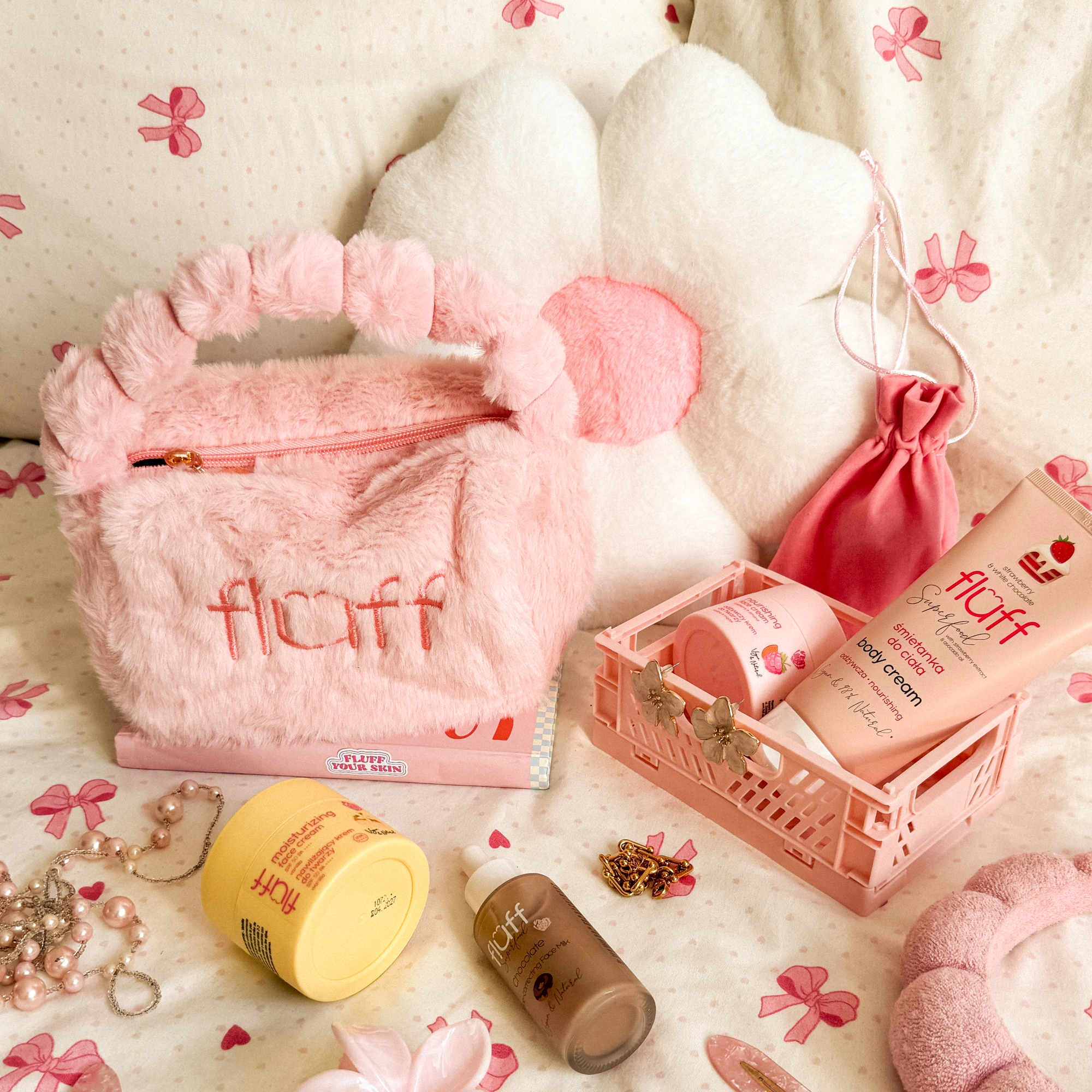 Το Fluff Fluffy Cosmetic Bag Large Pink είναι νεσεσέρ σε ροζ χρώμα. Έχει μεγάλο μέγεθος, υφή βελούδινη και διαθέτει φερμουάρ με χρυσές λεπτομέρειες. Ιδανικό για αποθήκευση καλλυντικών και θήκη πινέλων. Προϊόν limited edition.
